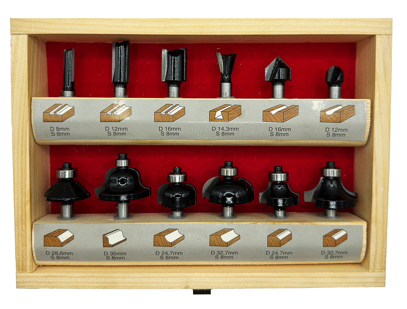 Abraboro 12 részes HM felsőmaró készlet, 8 mm-es szárral