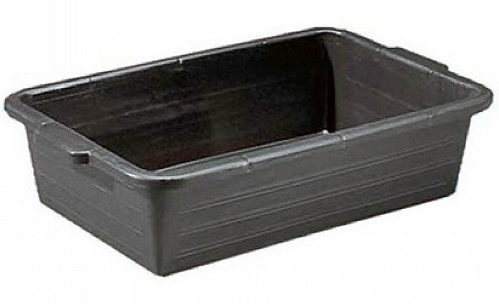 Rugalmas és erős műanyagból készült olajleeresztő tálca, 40 liter kapacitással, két oldalán fogó fülekkel.