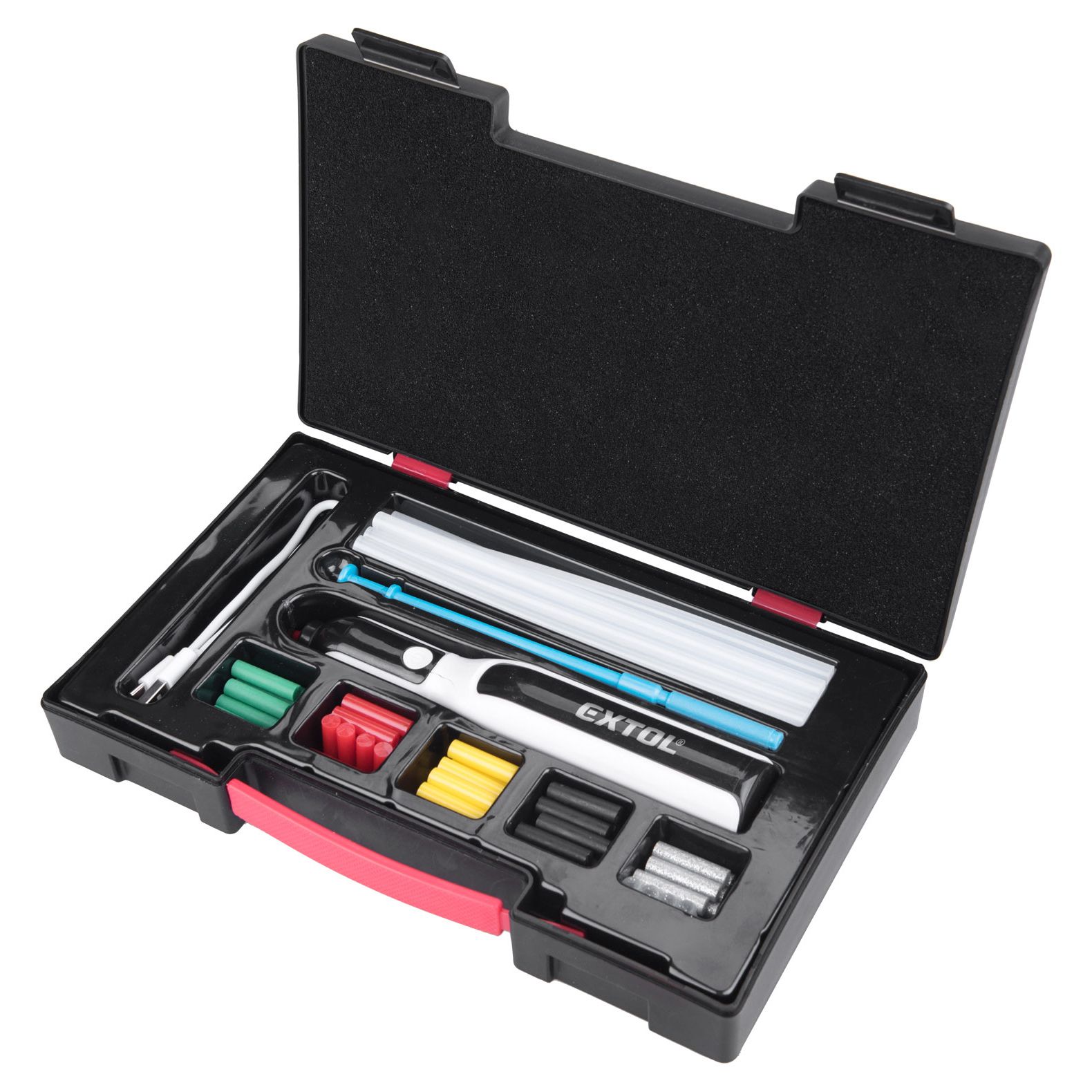 - Az Extol® Premium 8891503 USB-ről feltölthető akkus ragasztóolvasztó tollban motor mozgatja a ragasztórudat.